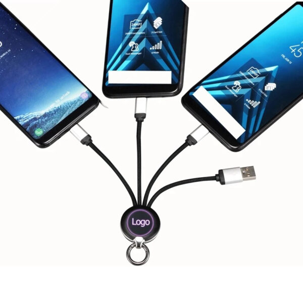 Bamboo light up logo 3 in 1 usb charger cable for mobile phone