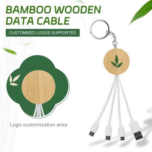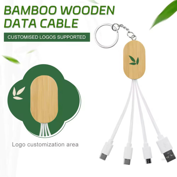 Bamboo 3 in 1 Custom Logo usb Charger Cable