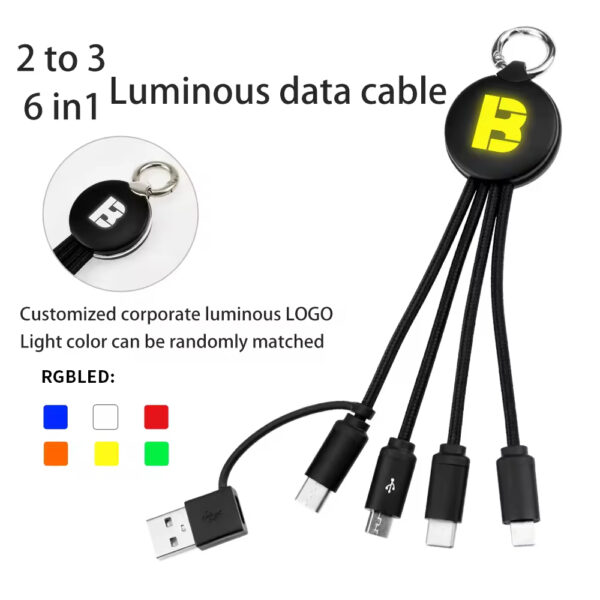 Gift 3 in 1 Usb Cable luminous led light logo cable