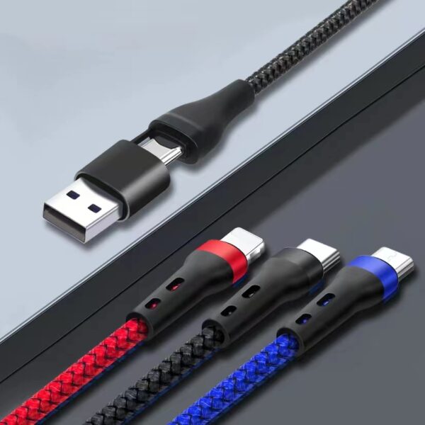 Nylon Braided 5 in 1 Dual Input USB Type c Cable With LED Logo Charging Cable